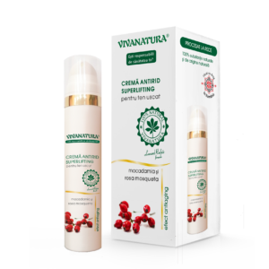 Laboratoarele VivaNatura au lansat Crema 24 h antirid superlifting pentru ten uscat cu Macadamia și Rosa Mosqueta.