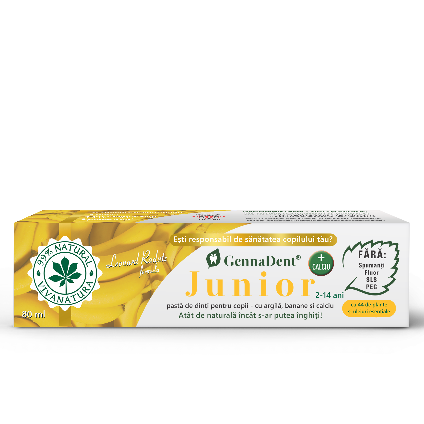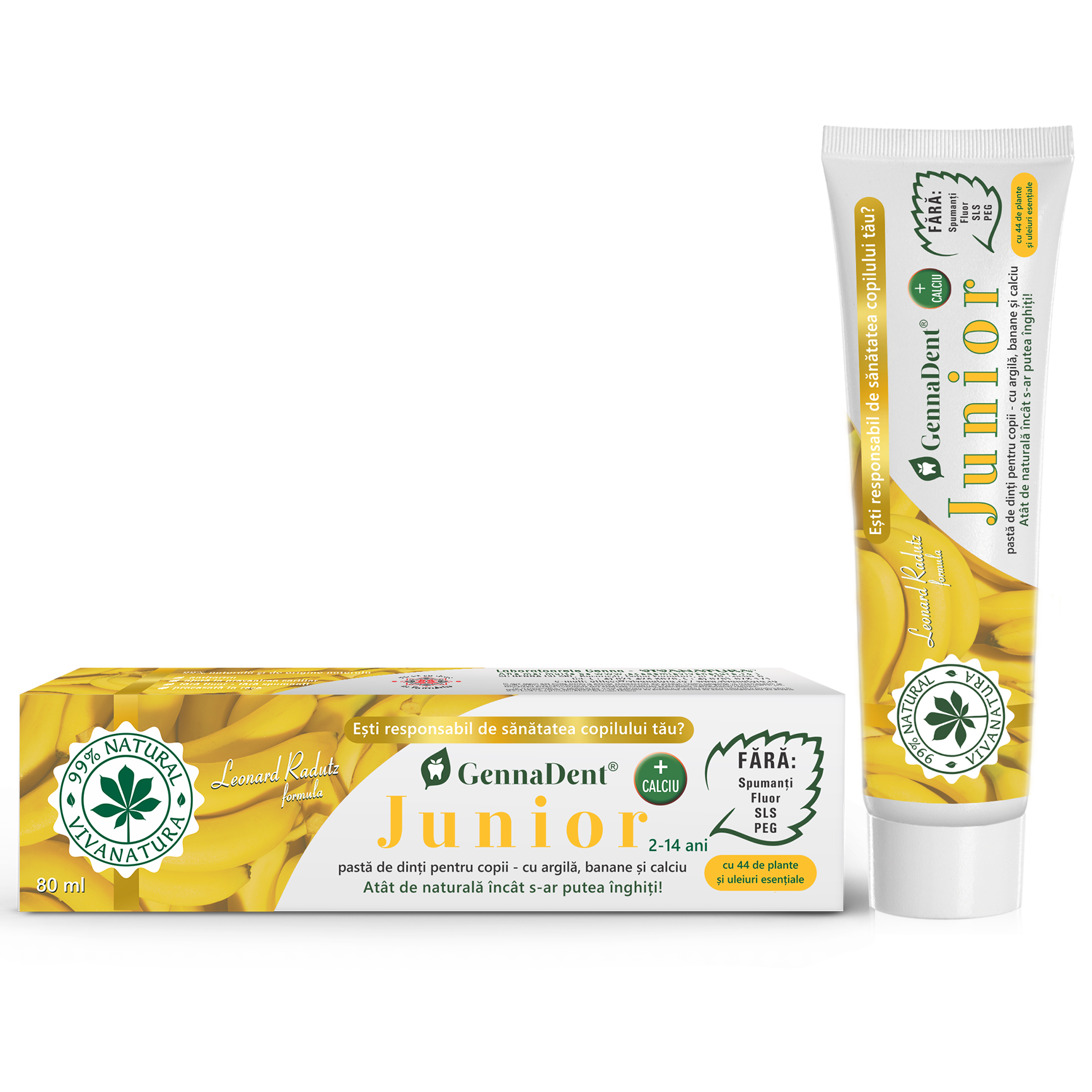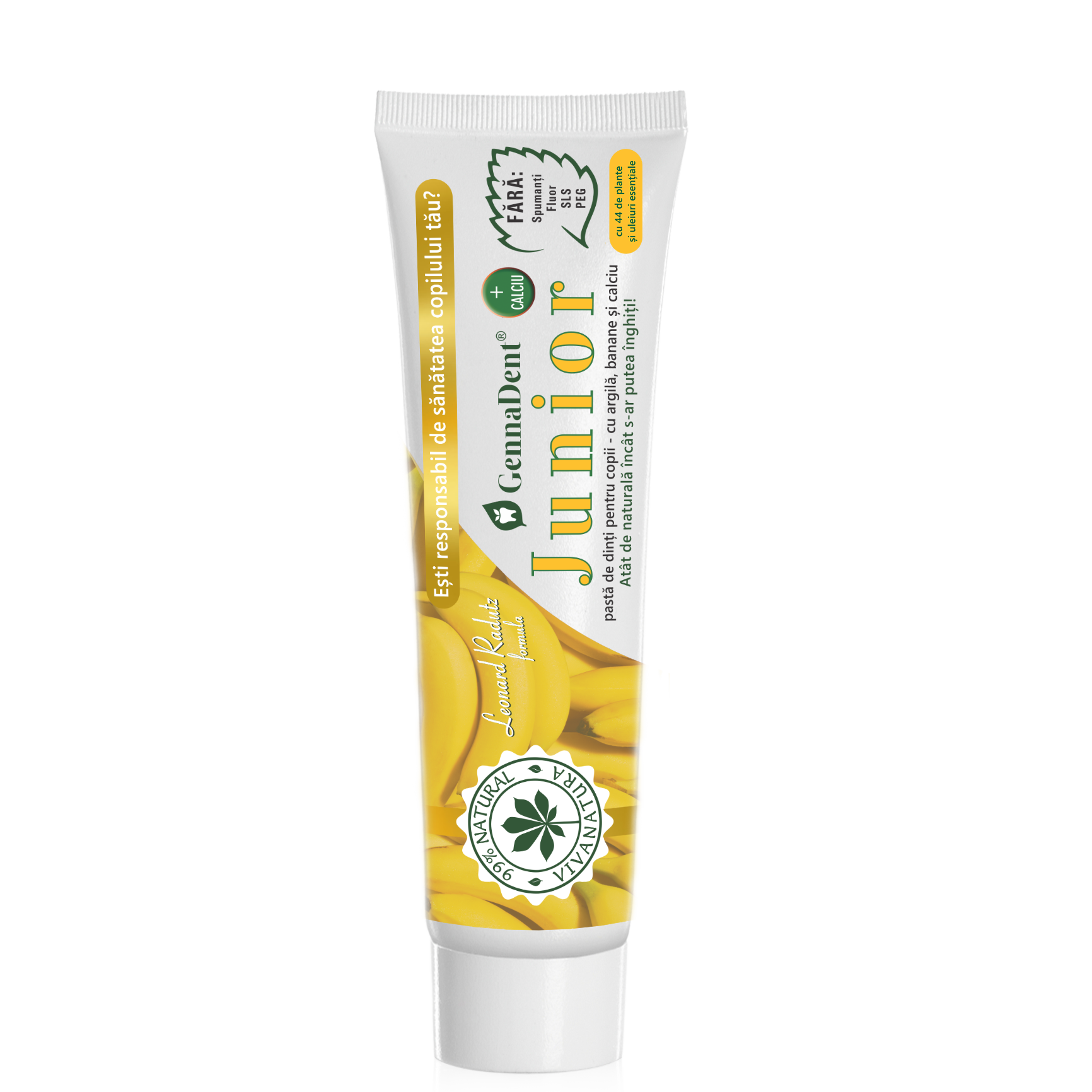 GennaDent Junior Banana – Pasta de dinti naturala pentru copii cu argila si banane, fara fluor, 80 ml – Leonard Radutz formula – VivaNatura