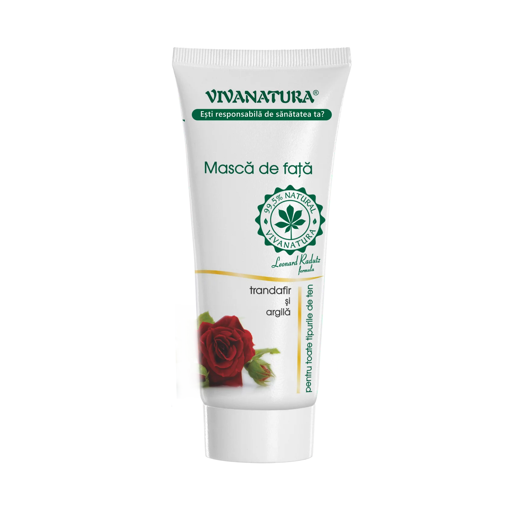 Formula benefică și eficientă a Măștii de față cu argilă activă și trandafir de la VivaNatura conferă tenului strălucire și vigoare.